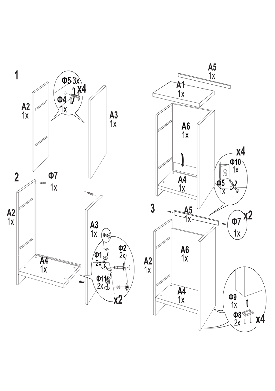 По способу крепления тумбочка может быть напольной (самая устойчивая), подвесной (монтируется к стене, ее не нужно отодвигать), с ножками или на колесиках (легко перемещать). Выбирая нужную комплектацию, проверьте наличие всех деталей, запасных элементов и инструкции.